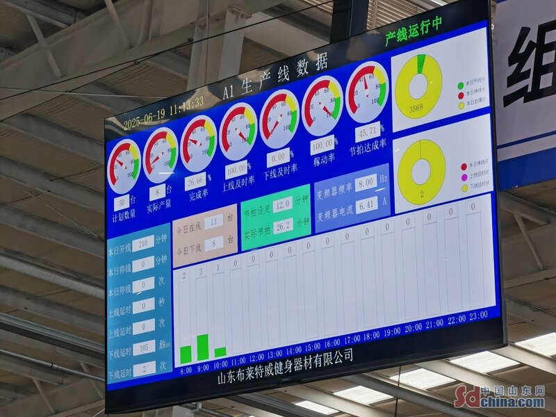正在山东布莱特威健身器械有限公司的坐褥车间,焊接机械人以毫米级精度摇动“臂膀”,激光切割后的金属零件正在刻板臂的操控下完毕精准焊接,随后颠末智能喷涂、主动化拼装,一台台极新的跑步机正在传送带上有序下线万平方米今世化坐褥基地的企业,刚才投资5000万元完毕智能化升级,新修的10万平方米数字工场里,智能限定编制让产能擢升至素来的2.2倍,产物及格率更是跃升至98%以上。“从新产物打算到样品告终,15天就能完毕。”