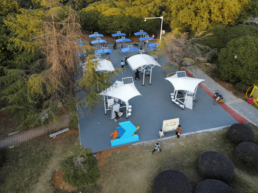 此外,器材顶部配备的环保且安全的太阳能电池板,满足了器材自身用电需求,既节能又环保。